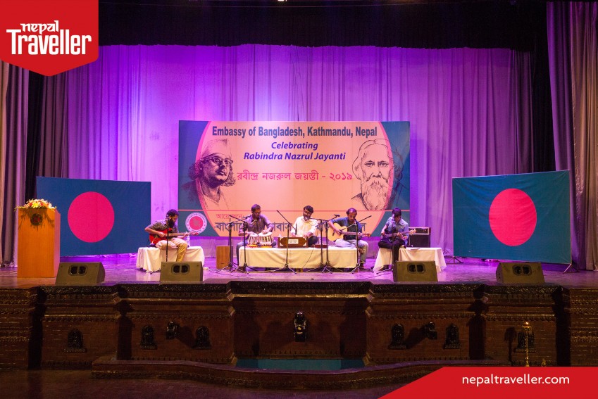 Marking the 158th and 120th birth anniversary of Rabindranath Tagore and Kazi Nazrul Islam respectively, the Embassy of Bangladesh to Nepal organised a cultural show on June 14 at Army Officer's Club, Sundhara. The event was graced by Governor of Province 3, Anuradha Koirala as the Chief Guest, Ambassador of Bangladesh to Nepal, Her Excellency Mashfee Binte Shams, dignitaries from Nepal and other countries and media.