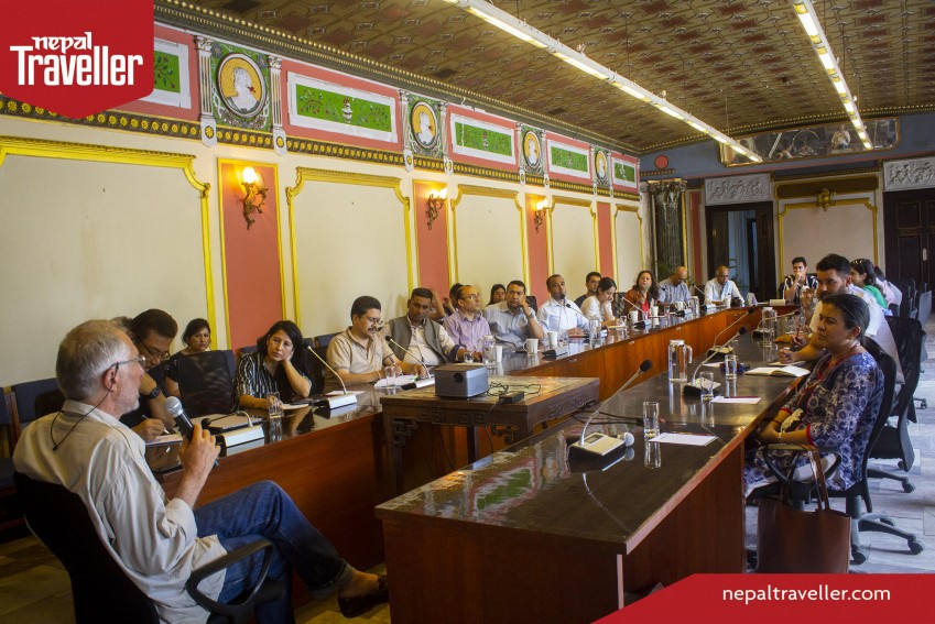 The afternoon featured a discussion meeting with the Visit Nepal Year committee and media-personnel speaking about the prospects of Nepal as a tourist destination. Valli's experiences in Nepal were highlighted along with the power of film direction in fostering the development of tourism in the country.