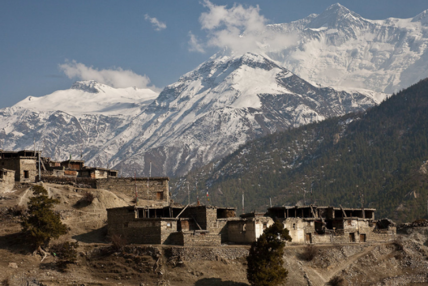 Towering above the district is Mount Dhaulagiri (8,167 meters)—the seventh-highest mountain in the world—part of the Dhaulagiri Himalaya range that dominates Myagdi’s northern horizon.